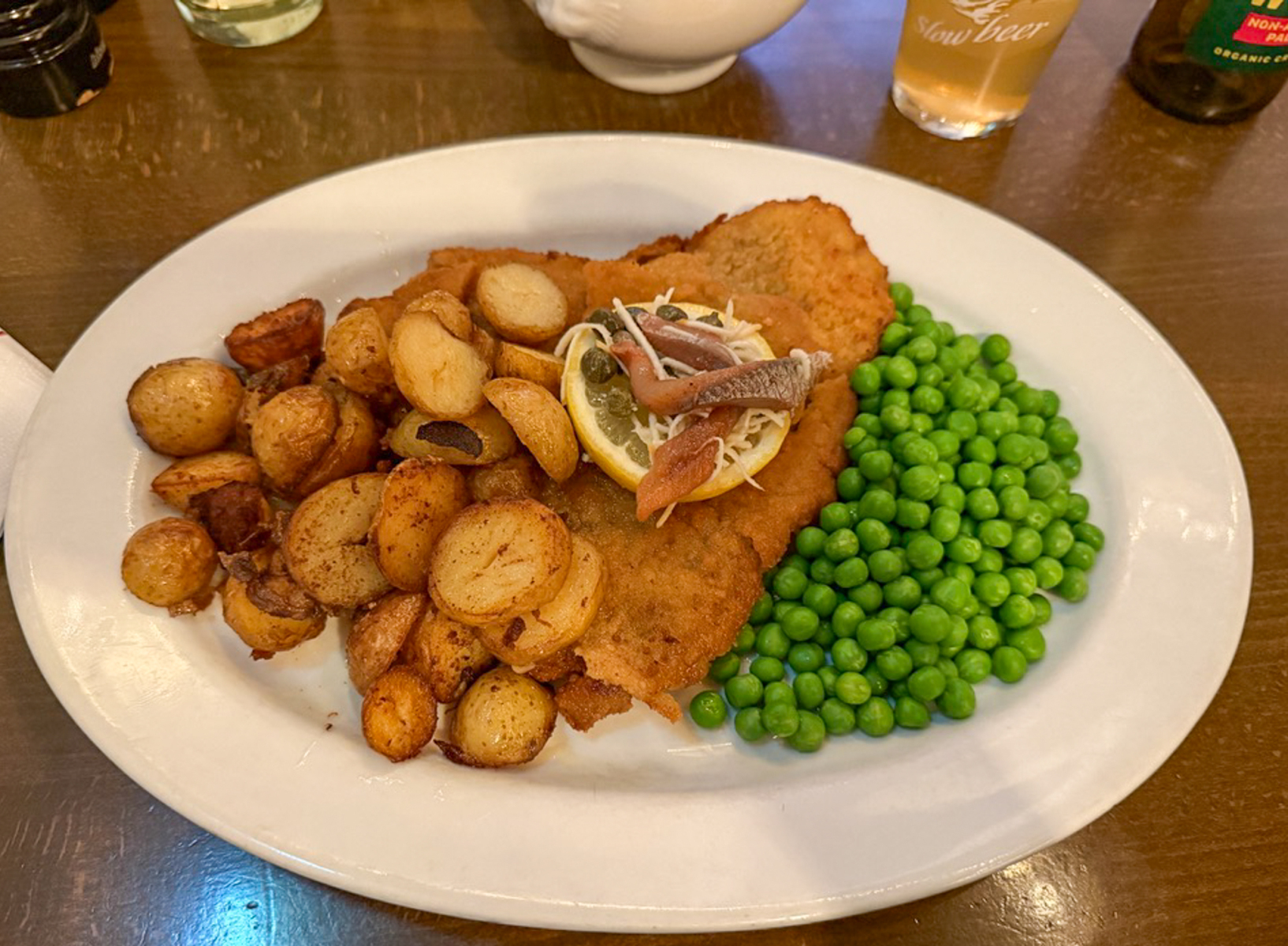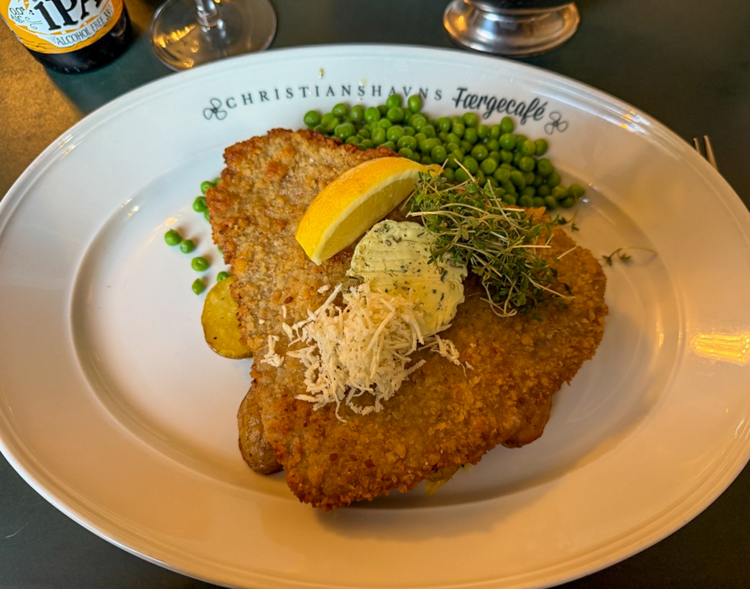 But before we get to buildings, let’s begin with food. We all like food – some of us perhaps more than most. We certainly do. Below you can see what we ate: delicious Wiener schnitzel, traditional Danish hot dogs, smørrebrød, and more.