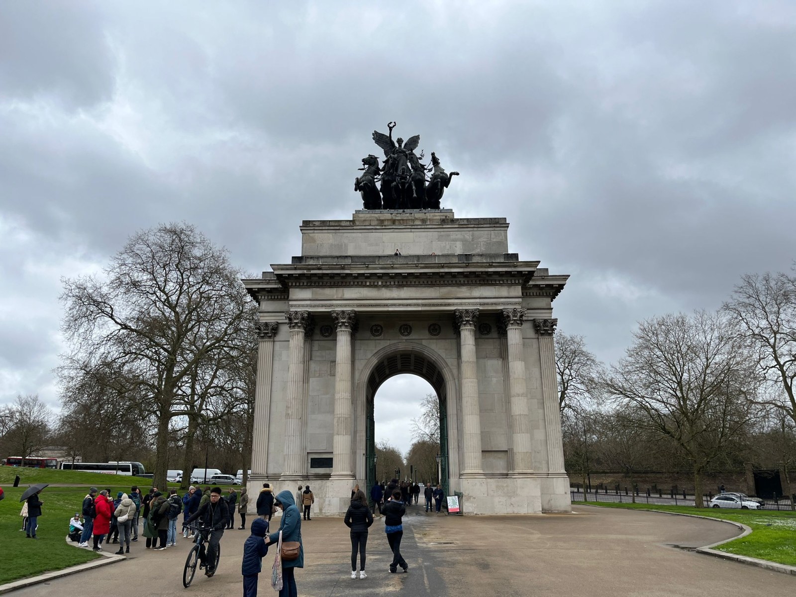 The Hyde Park is beautiful and large. The first meaningful building we saw was the Royal Albert Hall. I immediately remembered that Albert Einstein had his last speech there before heading to the USA and never setting foot in Europe ever again. Why this fact? I recently re-watched Oppenheimer on Netflix. After the Royal Albert Hall, we were en route to see Buckingham Palace. A huge gated building with a lot of people outside trying to take a decent selfie. Underwhelming. Then it started to rain and it did not stop for the rest of the day. Nevertheless, after the Palace, we went to get a first eye on Westminster and the giant clock. Once I saw the statue of Churchill, rain or no rain, I had to stop and take a picture. Don’t be surprised but during our trip, we came to Westminster three times (we were in London for four days, the last being the shortest). After taking a picture of Sir Winston we looked for our first bite to eat. Unwilling to use mobile internet in London we completely trusted our intuition. Thus our first stop was a nice bar that served good burgers and tasty beer close to the Westminster Abby.