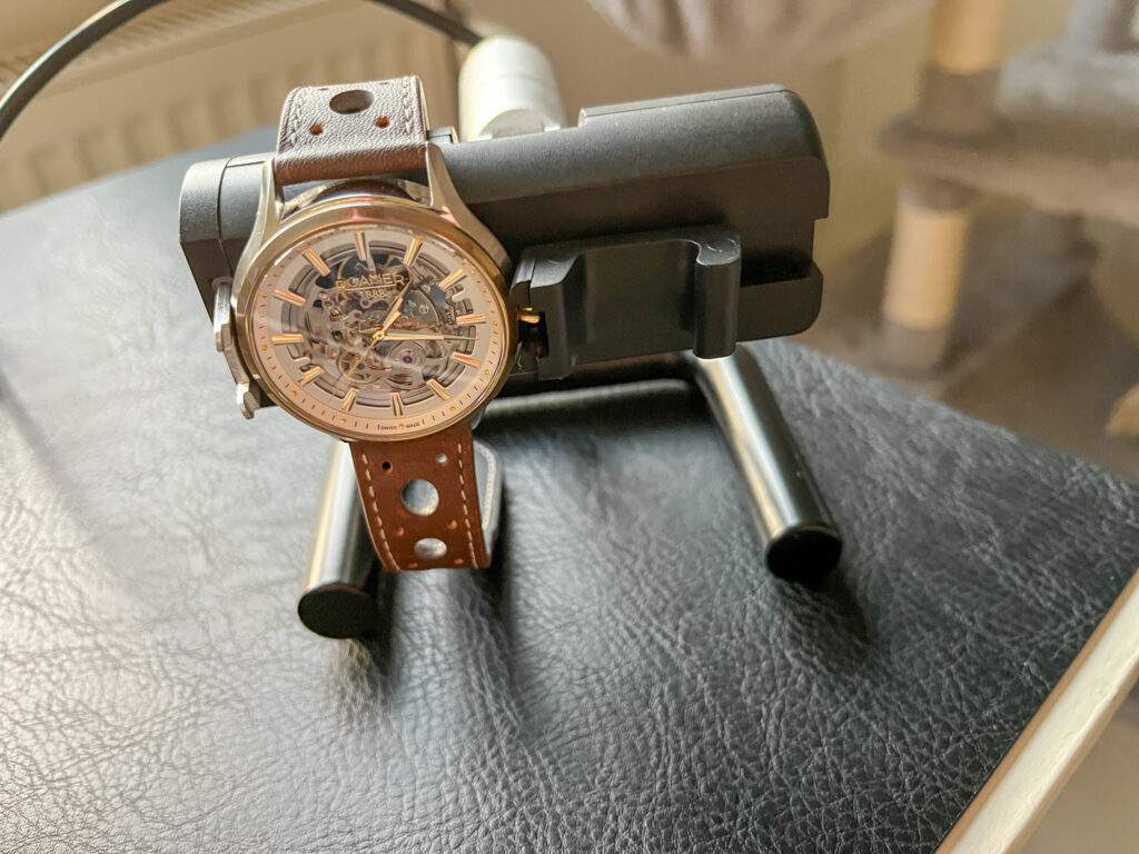 Then, there’s my first mechanical watch—the Roamer. If you’re new to my site, you may not know that the crown once broke off. One day, I took it out of my watch box, pulled the crown to set the time, and ended up holding it in my hand. Let’s just say my chest tightened at that moment. I took it to the shop where my wife had purchased it, and while they replaced the crown, they also managed to scratch the caseback. Thanks to my new macro lens, I can now see they didn’t even clean the see-through caseback before reassembling it.